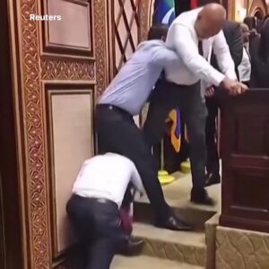 Footage captured a chaotic scene where members of the Maldives parliament traded kicks and fought with opposition lawmakers near the Speaker’s chair.