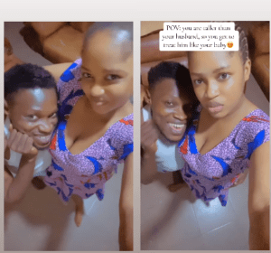 The wife shared the loved-up video with the caption: “POV: you’re taller than your husband so you get to treat him like your baby.”