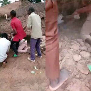 In the video shared online, rescuers are seen trying to lift the debris of the collapsed hut to save kids who were trapped beneath it.