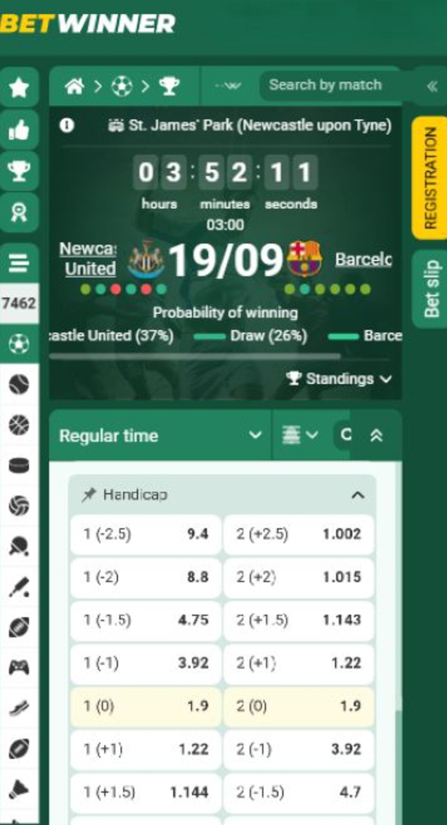 For instance, placing a bet on a favorite with a -1 handicap, that player’s home team has to win by at least two goals in order for you to win your bet. If you bet on a team like the away team with a +1 handicap, that player’s bet is a winner if they draw the match or win the game outright. For bookmaker like Betwinner, you can see the sports betting section in football where handicap market is available.