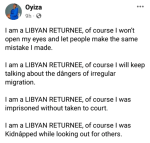 “I am a LIBYAN RETURNEE, of course I won’t open my eyes and let people make the same mistake I made,” she wrote.