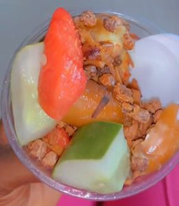 The customer, who was expecting their yoghurt to be garnished with fruits and nuts as is customary, got beans, kpomo, cucumber, and other toppings that have no reason to be added to a parfait.