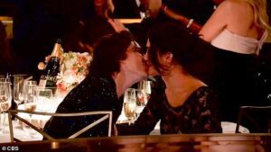 The Wonka star, 27, who was nominated for Best Performance by a Male Actor in a Motion Picture – Musical or Comedy for the movie, was pictured holding Kylie’s hand as they arrived at the ceremony late.