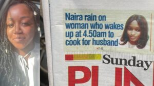 Punch Newspaper ran a story on Debbie with the caption ‘’Naira Rain on woman who wakes up at 4.50am to cook for husband”