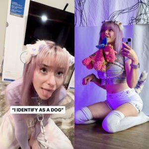 Donning a pair of faux dog ears and a collar, Dalyn, who refers to herself as “dog girl” and “e-puppy,” said she identifies as a dog and has fully immersed herself into the doggy lifestyle even when it comes to events that bedroom events that happen at night.