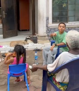 A mixed race kid has gone viral after he was filmed speaking fluent Igbo with his grandmother.