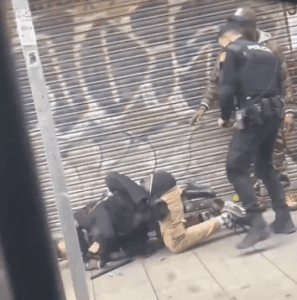 The video, shot on Friday, March 29, in Lavapiés, appears to show one of the men on the ground and immobilised by a police officer who seemingly has him in a chokehold.