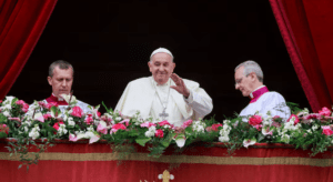 The Roman Catholic Church leader presided over Mass in a packed and flower-bedecked St Peter’s Square and then delivered his “Urbi et Orbi” (to the city and the world) blessing and message from the central balcony of St. Peter’s Basilica.