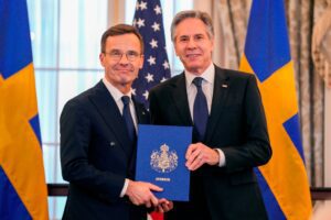 Swedish Prime Minister, Ulf Kristersson formally handed over treaty accession documents to the US State Department in Washington, DC, the final step of a months-long process to gain the approval of all members to allow his country to become the alliance’s 32nd member.