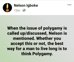 The son of late Ebonyi monarch, Nelson Igboke, has said that the best way a man can live a long life is to embrace polygamy.