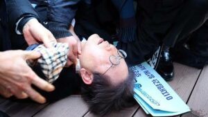 In a briefing Tuesday, Democratic Party spokesperson Kwon Chil-seung called the attack an act of “terrorism” against Lee and “a serious threat to democracy.”