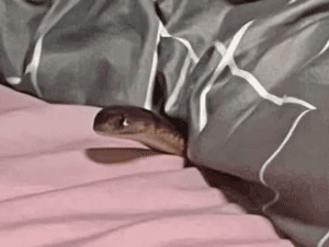 The young woman managed to snap a picture of the intruder poking its head out from beneath her blanket.